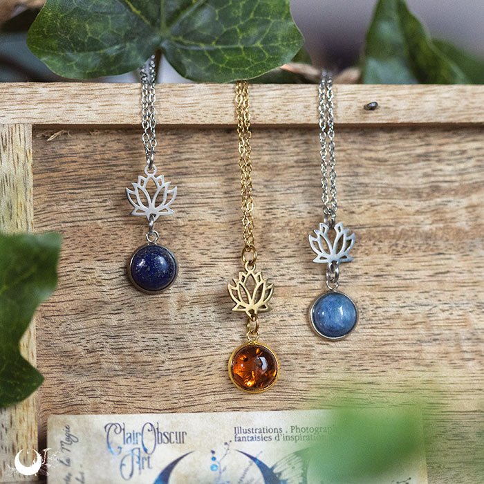 Collier "Lotus" en acier inoxydable, délicat, fin et léger, pierre au choix.