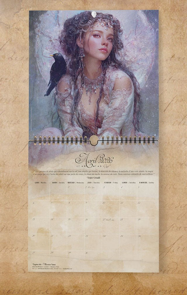 Chaque mois vous découvrirez une nouvelle image accompagnée d'une citation de mes auteurs préférés, les dates clés comme les phases de la Lune sont indiquées. Les jours et les mois sont inscrits en Français et en Anglais. La seconde page comporte la grille pour noter vos rendez-vous et dates importantes.