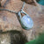 Magnifique collier "Éiréné" avec une pierre naturelle : Pierre de Lune arc-en-ciel (aussi appelée Labradorite blanche). Pendentif en Argent 925 et chaîne en acier inoxydable. Taille de la pierre : 13x18mm