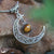 Collier "Luna" réalisé avec une pierre naturelle : Oeil de Tigre, montée sur un support original accroché à la demi Lune. Pendentif en métal (laiton plaqué argenté ou couleur bronze au choix, garantie sans nickel). Taille de la pierre : 10x10mm