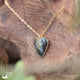 Collier fantaisie "Lyra" orné d'une belle Labradorite facettée en forme de goutte. Un joli pendentif au style élégant et elfique. Chaîne en acier inoxydable, pendentif en laiton vernis et contour de la pierre en argent 925 dorée (non collé, la pierre est en contact avec la peau).