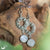 Boucles d'oreilles Fantaisie "Calliope" originales et légères avec de véritables pierres : Pierre de Lune arc-en-ciel (aussi appelée Labradorite blanche). En métal (laiton plaqué vernis et sans nickel. Crochets en Acier inoxydable.