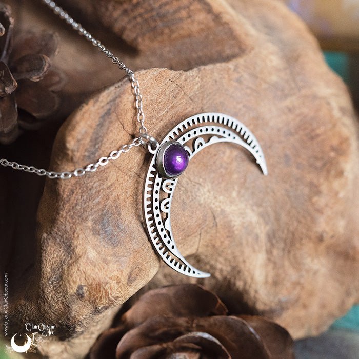 Plongez dans la magie lunaire avec ce collier délicat en forme de croissant de lune, orné d'une pierre fine au centre. Choisissez entre l'ambre chaleureux, la labradorite mystique ou le grenat profond, chaque pierre apportant son propre éclat et son énergie unique.