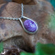Collier "Ananta" réalisé avec une pierre naturelle : Calcedoine aqua, montée sur un support et placé sous un joli pendentif. En métal (laiton plaqué argenté garanti sans nickel). // Ananta signifie "celui qui n'a pas de fin". Pour ce pendentif (comme pour le signe de l'infini) nous retrouvons une idée d'éternité.