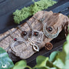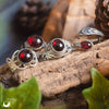 Le grenat révèle particulièrement bien la profondeur de sa couleur lorsqu’il est monté sur des bijoux argentés ou en acier, qui accentuent son éclat et ses nuances rouges. Les montures bronze offrent un rendu plus chaleureux et discret, mais font généralement moins ressortir l’intensité de la pierre.