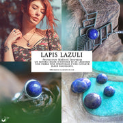 Les nuances de bleu intense parsemé de paillettes dorées évoquant la voûte céleste de la pierre Lapis Lazuli font de cette pierre semi précieuse un minerai riche d’histoire et de légendes. Les Egyptiens lui octroyaient des vertus magiques : symbole de la force de vie, de la puissance divine et de sérénité.